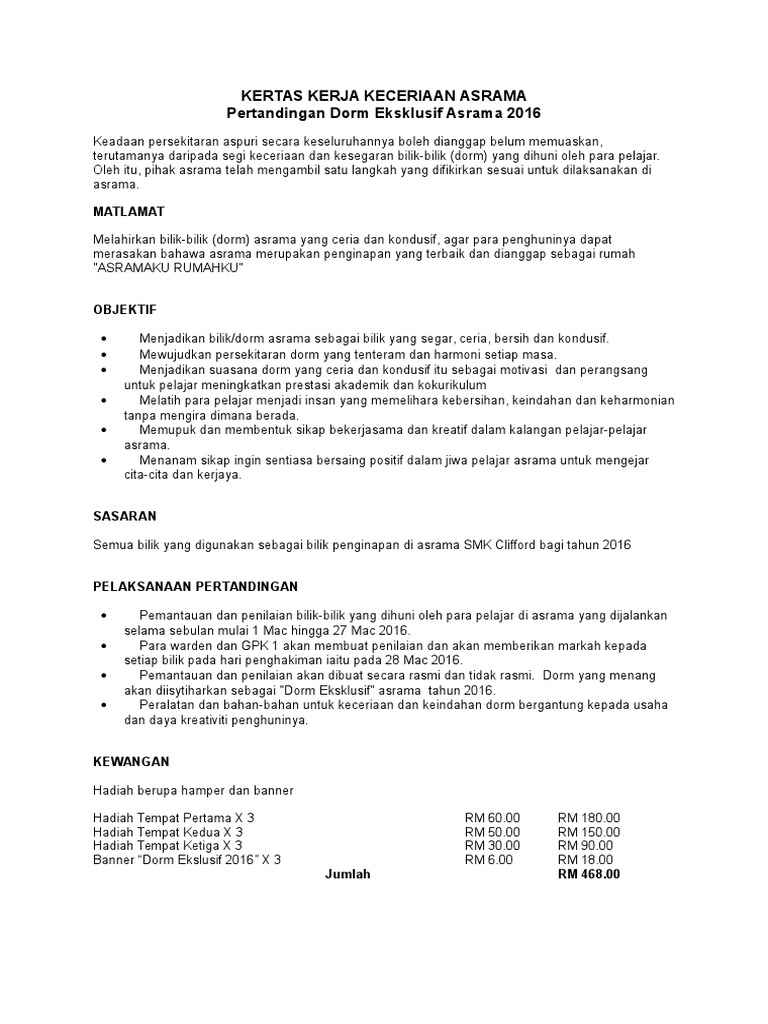 Kertas Kerja Keceriaan Asrama Pdf
